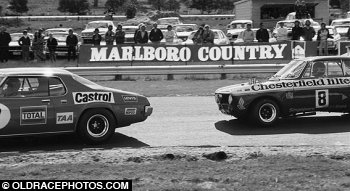 Brian Foley Alfa Romeo GTAM V8 chases Bob Jane Monaro 350 at Symmons 1972