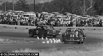 Trident Racing Team thru TNT9 cnr Symmons 1968. Beechey, Chev Nova, McKeown Lotus Cortina, Manton Cooper S