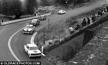 Tourers into the viaduct Longford 1967. Gene Cook Fiat 1500, Allford Customline next.
