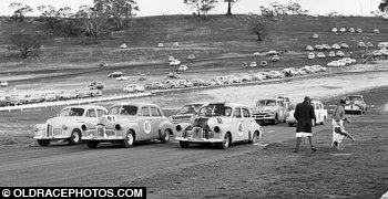 Darryl Wilcox, Gene Cook and Peter Lockley (L-R) take off at Baskerville 1968