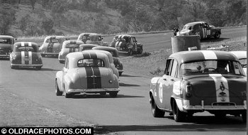 Mike Warner leads the pack of early models into the Esses at Baskerville 1973 John Barrett FC at rear