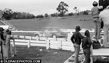 Aftermath of Stuart Salter losing a wheel on pit straight Baskerville 1974
