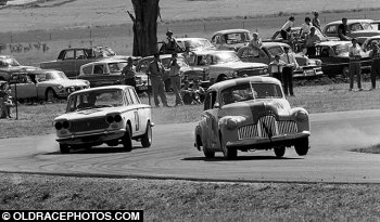 MIke McIvor FX Holden leads an understeering Gene Cook Fiat 1500 Symmons 1967