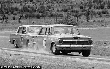 Jim Miller leads Darryl Boyd EH Holden s Baskerville 1968. Pretty sure the Boyd car was still a 149 motor on triple SUs at this point.