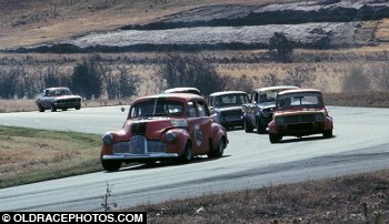 Murray Richards FX Holden leads the pack thru the Esses Baskerville 1977
