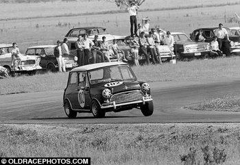 Randall Bromfield Mini Cooper S 3 wheeling at Symmons Plains 1967