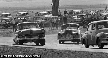 Maurice Price No 76 FJ leads Roy Allford Ford Customline and Peter Lockley FX Holden Symmons 1967