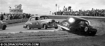 Brian Russell spins his FX at TNT9 cnr Symmons 1971. Peter Smith takes to the dirt to avoid.