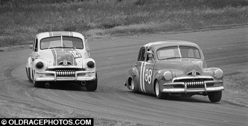 Mike Warner (R) and John Routley on the outside having a good scrap at Baskerville 1971