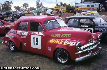 John Fidler FJ s/sedan Winton 1977 Ed Conacher XU-1 LH side, Matt Depaoli EH and Martin Arnold FJ behind. All Tassy cars from Hobart area.
