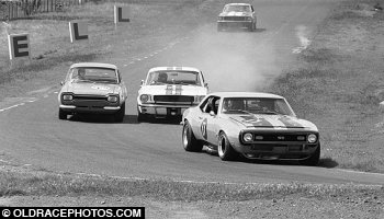 Bryan Thomson Chev Camaro, Robin Pare Mustang, Garth Wigston Escort T/C, Tony Calvert at rear Baskerville 1970