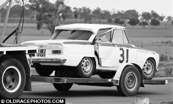 Peter Cazarro Alfa Ti after rollover at Symmons 1968. Ex Roberto Bussinello Sandown enduro winning car.