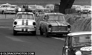 Barry Cassidy Austin A40 Farina, Robin Pare Anglia also. Longford 1967