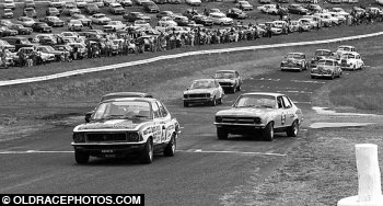 Peter Brock Torana XU-1 leads off at Baskerville 1972. Tim Smith XU-1 behind.