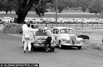 Graham Parsons Cortina GT MOuntford cnr Longford 1967. Mike McIvor FX Holden slips past