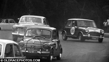 John Ancich Fiat Abarth Amaroo. Seldon or Kearns Volvo 122 at rear with Cooper S 1967. Fair quality only