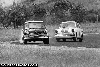 Randall Bromfield Mini Cooper S big understeer Baskerville 1967. Robin Pare Ford Anglia follows.