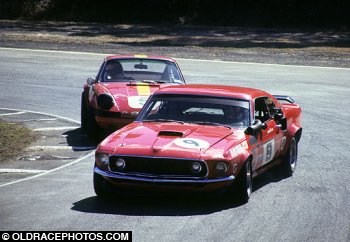 Allan Moffat Trans am Mustang leads Alan Hamilton Porsche 911 Amaroo Park 1972
